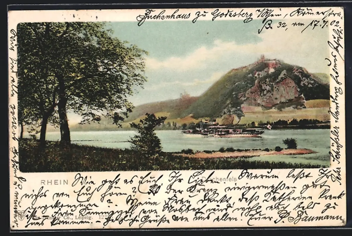 AK Drachenfels /Rhein, Dampfer auf dem Rhein
