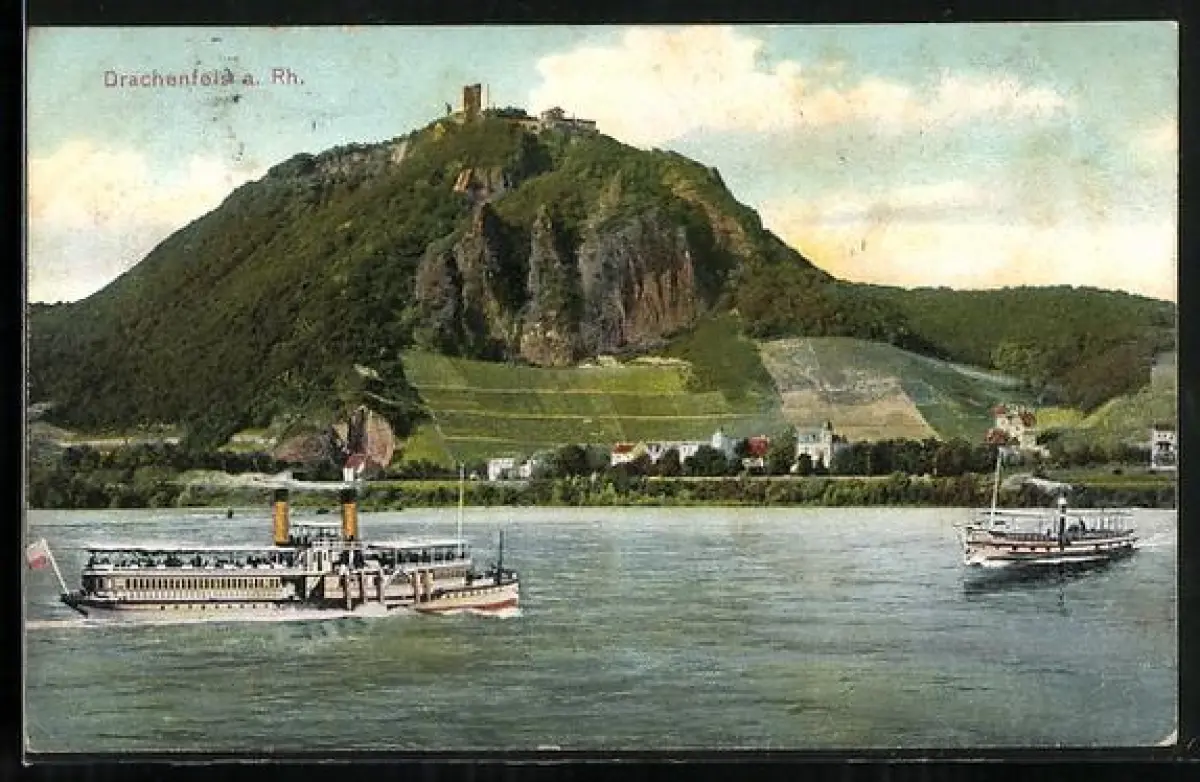 AK Drachenfels a. Rh., Ortsansicht mit Dampfern