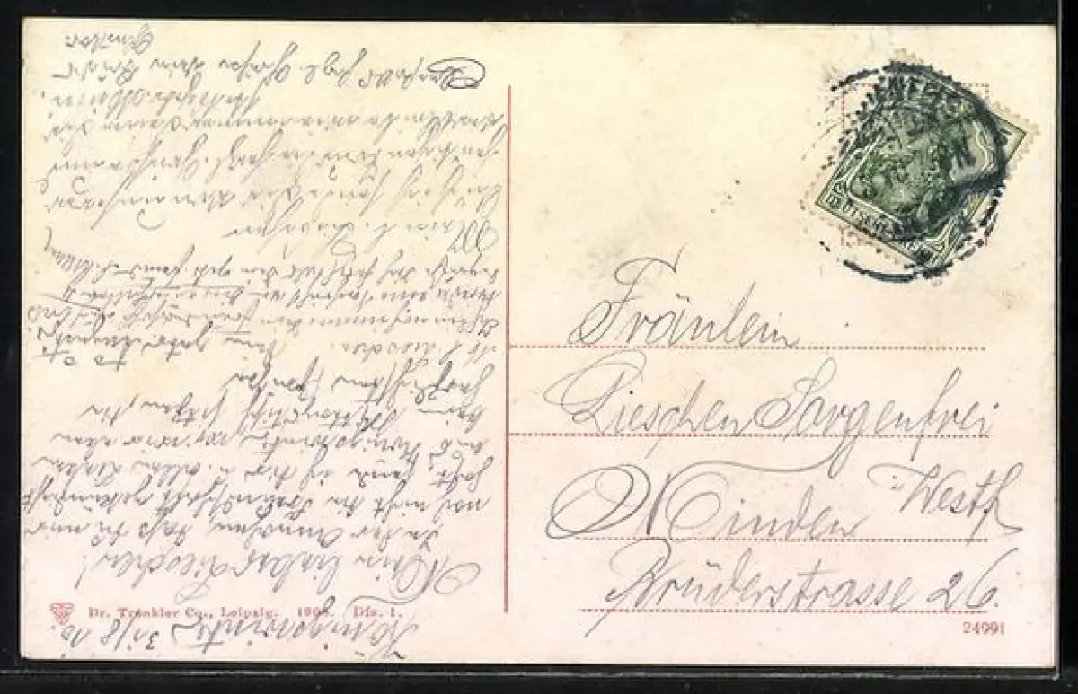 alte Ansichtskarte, gelaufen 1910, Stempelspur, guter Zustand