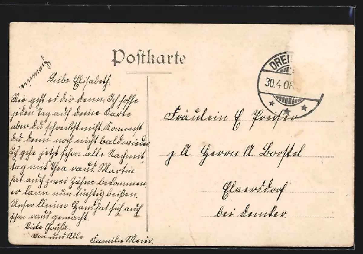alte Ansichtskarte, gelaufen, Briefmarke entfernt, rückseitig Oberflächenschaden, Bugspur unten mittig, guter Zustand