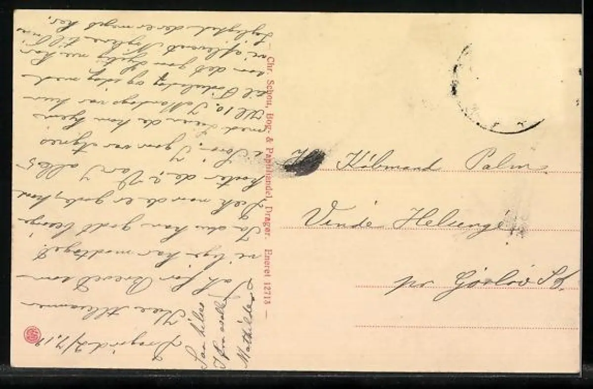 alte Ansichtskarte, gelaufen, Briefmarke entfernt, rückseitig Oberflächenschaden, guter Zustand