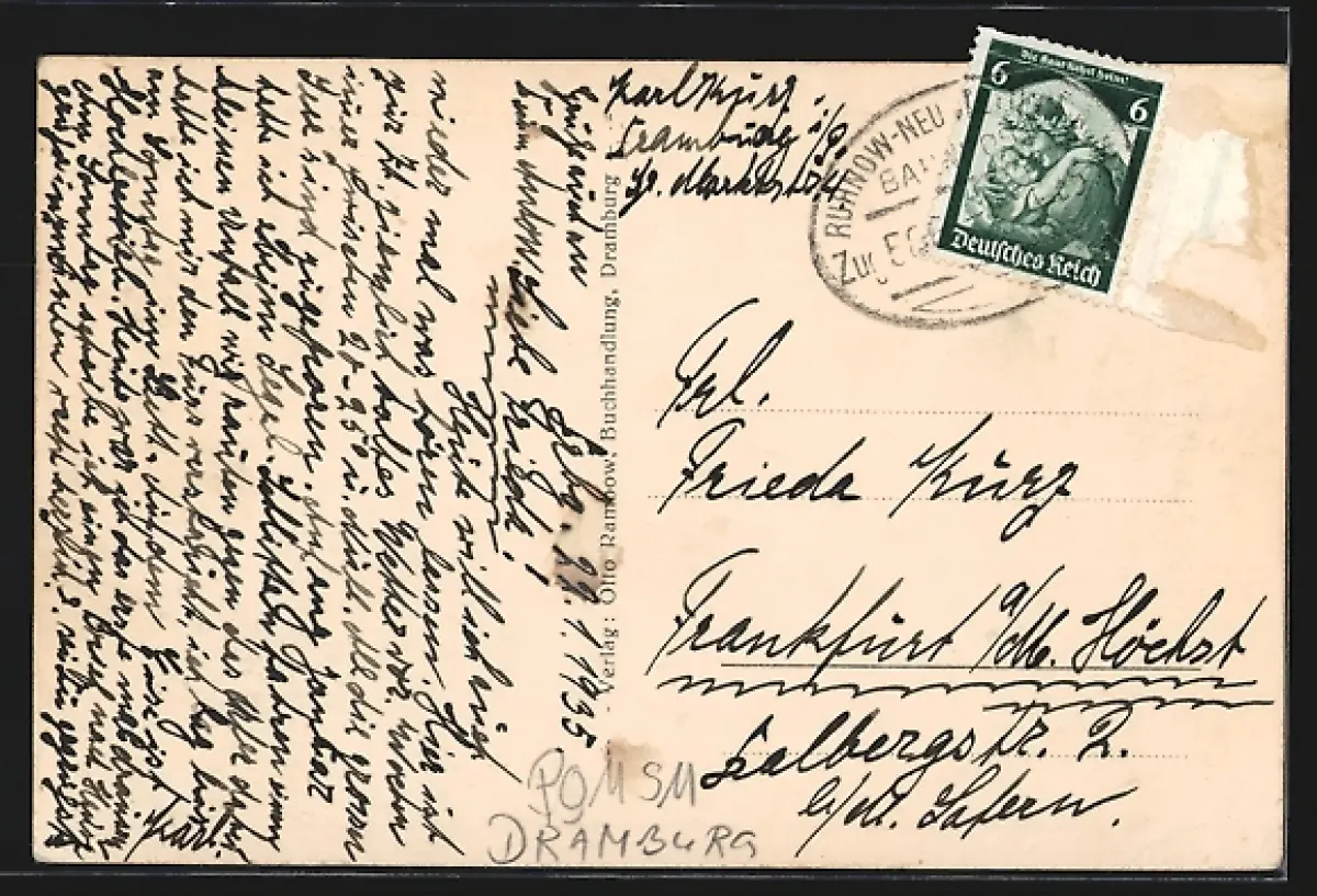 alte Ansichtskarte, gelaufen 1935, Briefmarke entfernt, rückseitig Oberflächenschaden, guter Zustand