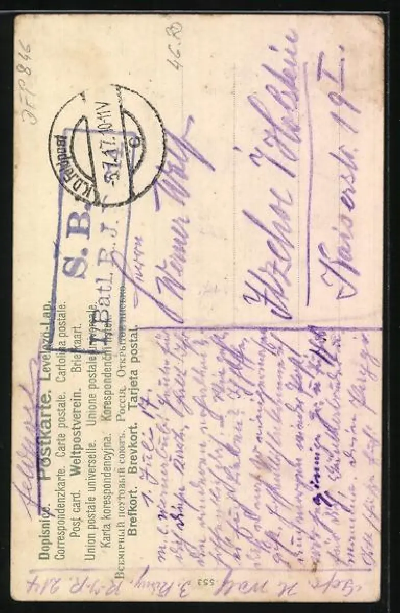 gelaufen 1917, Eckknick oben li., guter Zustand