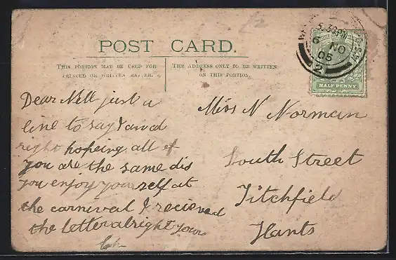 gelaufen 1905, Eckknicke oben und re. unten, guter Zustand