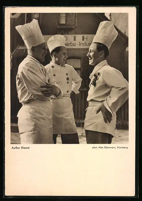 AK Drei Köche in Arbeitskleidung ausser Dienst