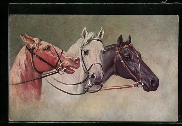 AK Drei Reitpferde mit unterschiedlichem Fell