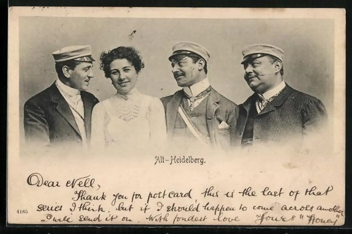 AK Drei ältere Studenten mit junger Dame, Alt-Heidelberg