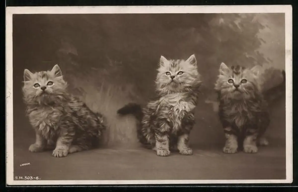 AK Drei getigerte Katzenjunge