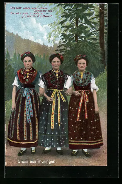 AK Drei junge Frauen posieren in thüringischer Tracht