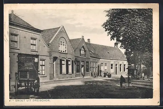 AK Dreischor, Strassenpartie mit einer Pferdekutsche