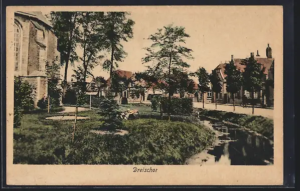 AK Dreischor, Uferpartie mit Wohnhäusern