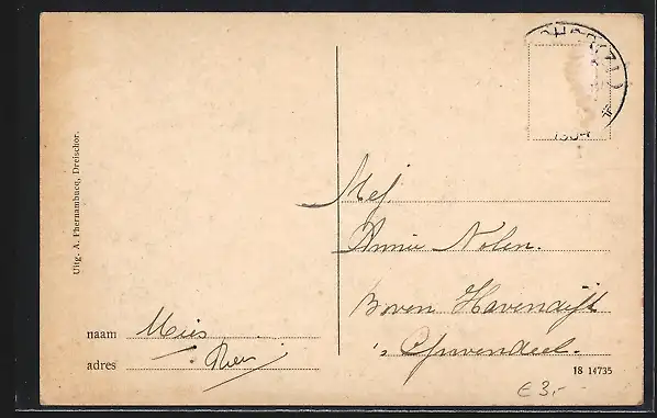 alte Ansichtskarte, gelaufen, Briefmarke entfernt, guter Zustand