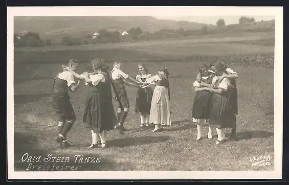 AK Dreisteirer, Volkstanz auf einer Wiese