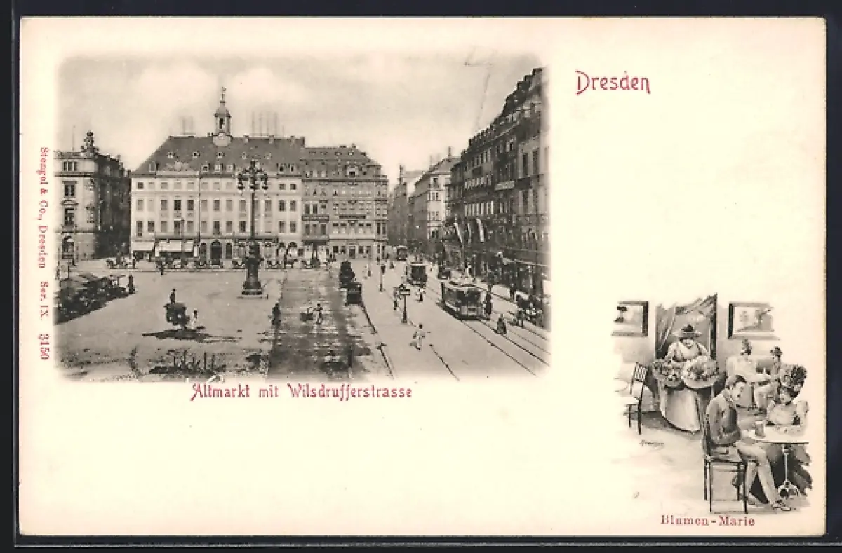 AK Dresden, Altmarkt mit Wilsdrufferstrasse, Blumen-Marie
