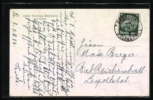 alte Ansichtskarte, gelaufen 1934, guter Zustand