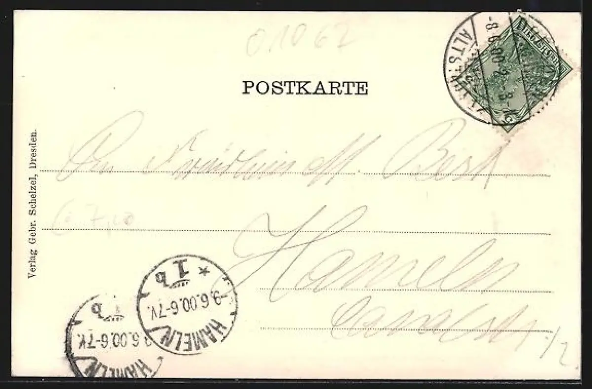 alte Ansichtskarte, gelaufen 1900, Stempelspur, guter Zustand