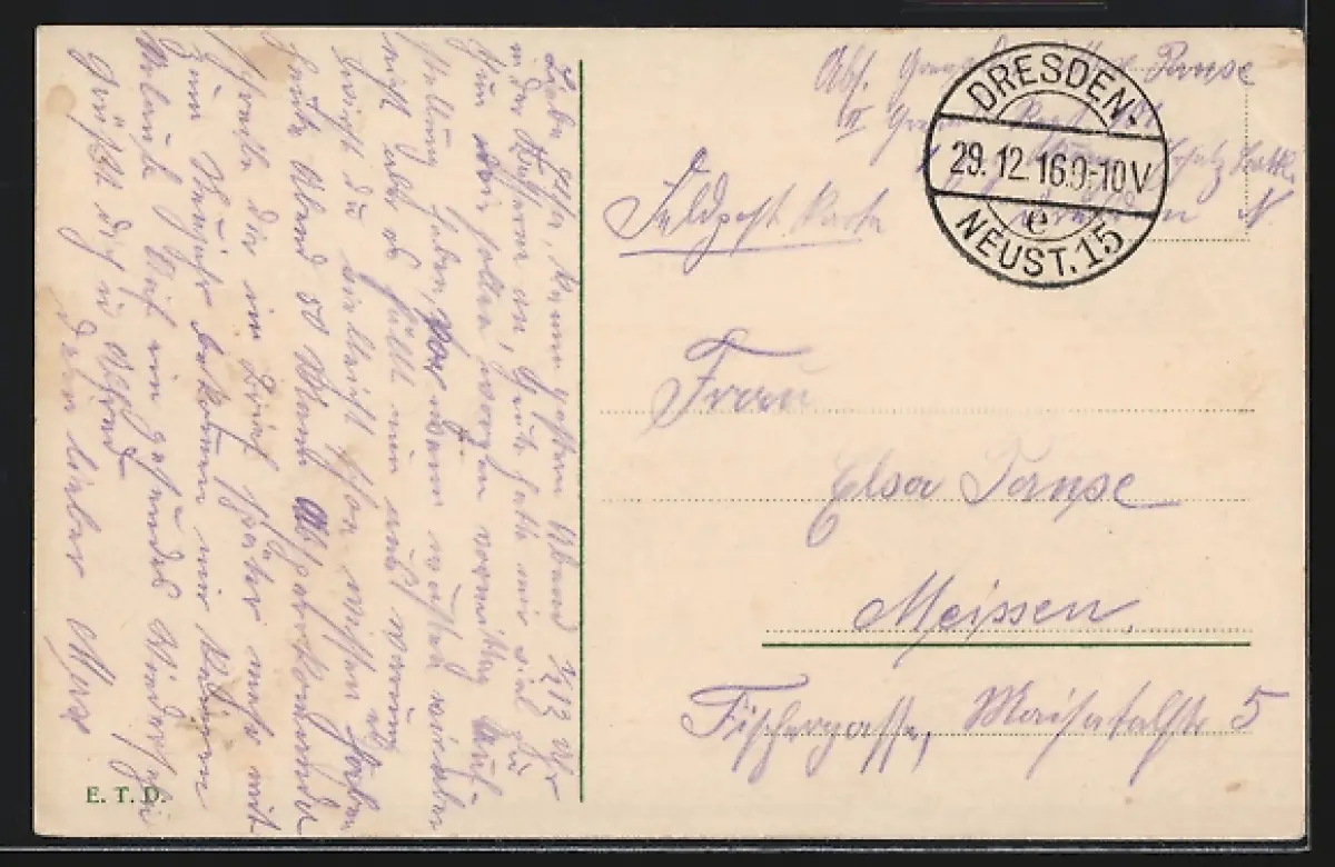 alte Ansichtskarte, gelaufen 1916, Eckknick oben li., guter Zustand