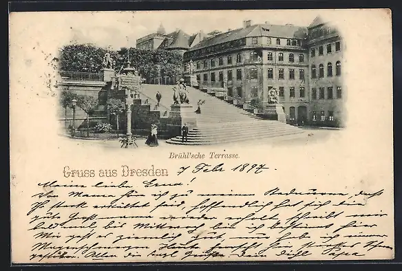 AK Dresden, Brühl`sche Terrasse mit Besuchern