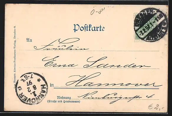 alte Ansichtskarte, gelaufen 1897, Stempelspur, guter Zustand