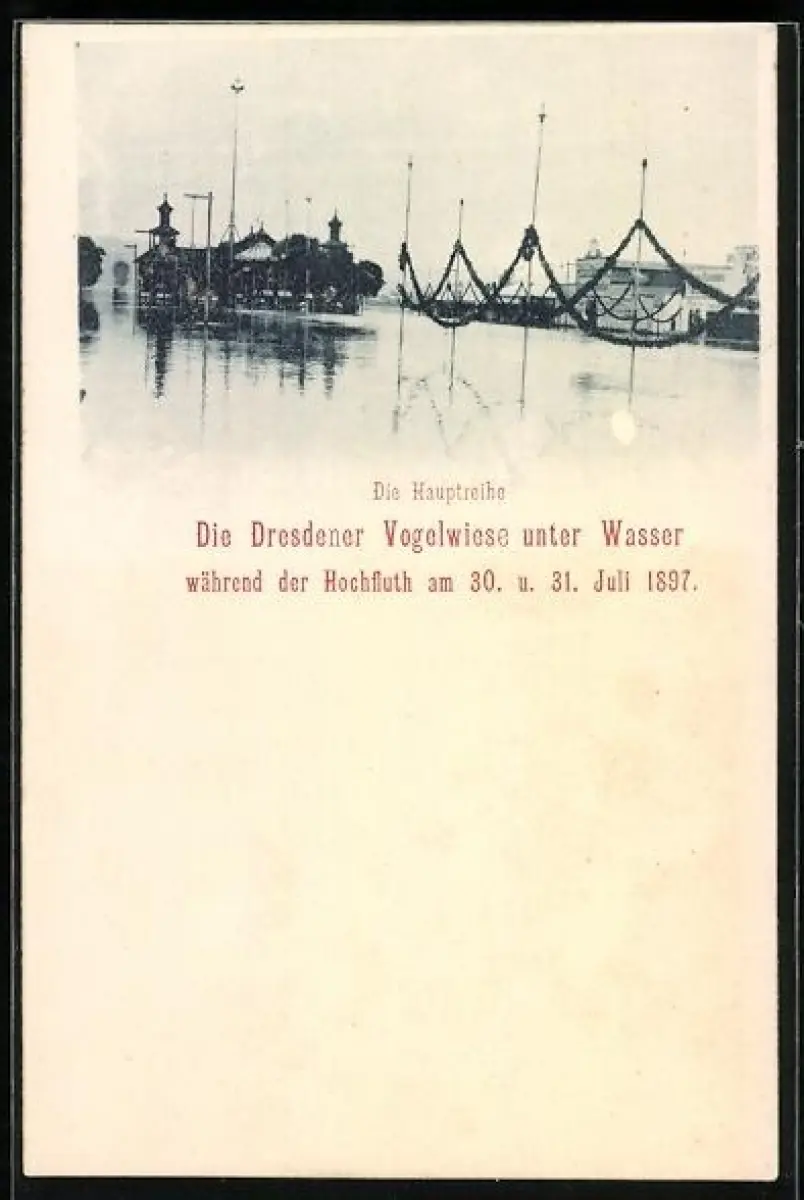 AK Dresden, Dresdener Vogelwiese, Hochwasser im Juli 1897, Die Hauptreihe