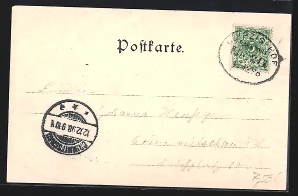 alte Ansichtskarte, gelaufen 1898, Eckknick re. unten, guter Zustand