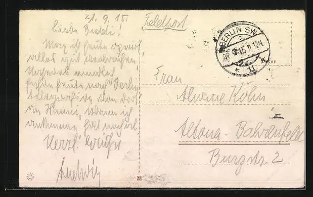 alte Ansichtskarte, gelaufen 1915, Stempelspur, guter Zustand