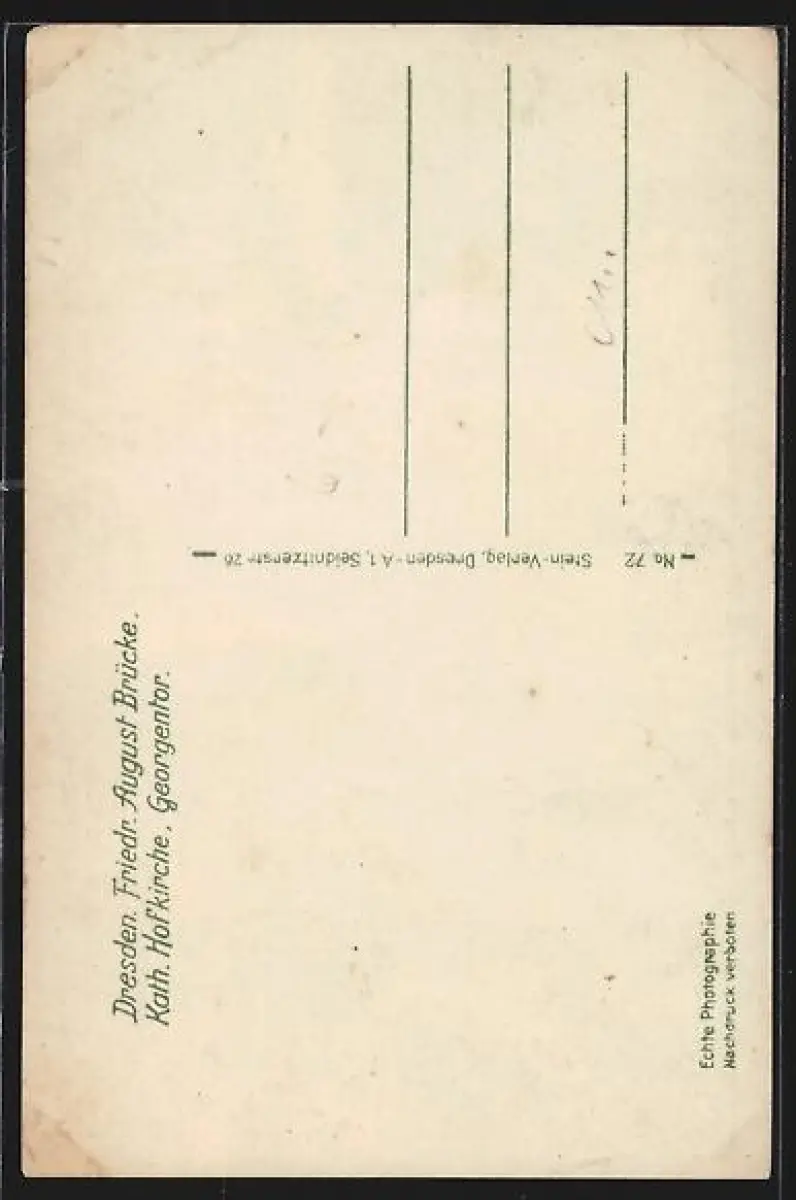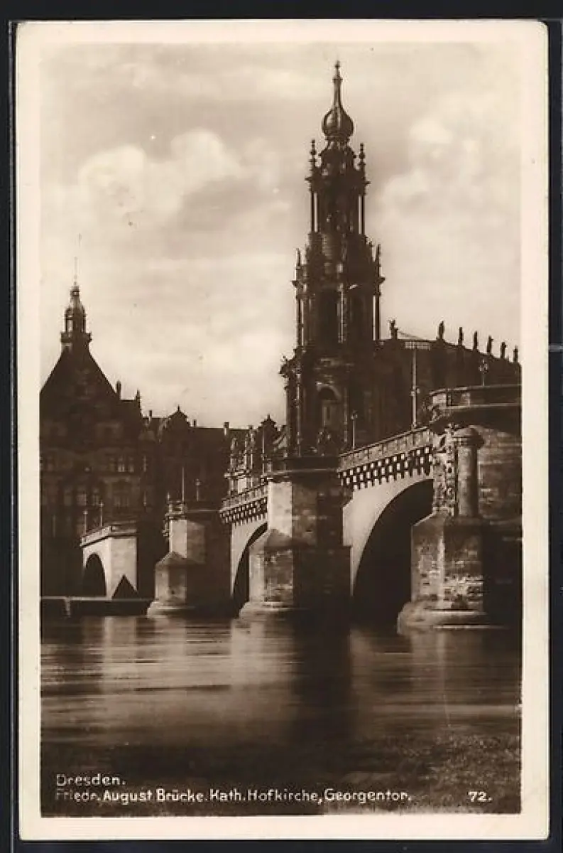 AK Dresden, Friedrich August Brücke, Kath. Hofkirche u. Georgentor