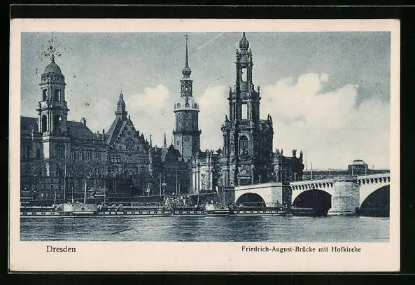 AK Dresden, Friedrich-August-Brücke mit Hofkirche