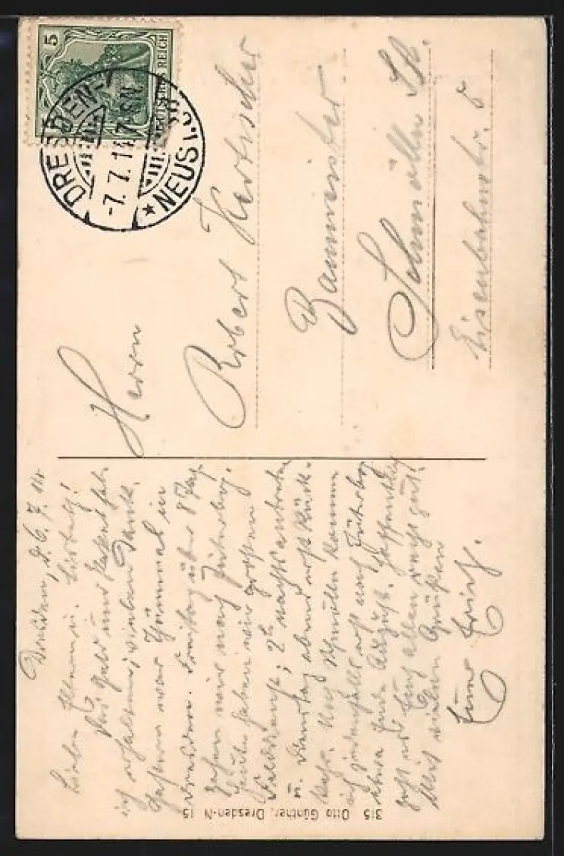 alte Ansichtskarte, gelaufen 1914, Stempelspur, guter Zustand