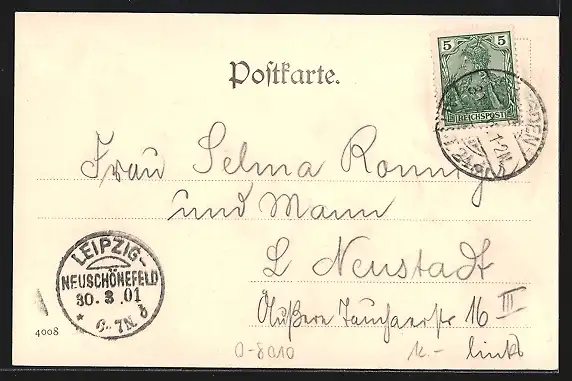 alte Ansichtskarte, gelaufen 1901, guter Zustand
