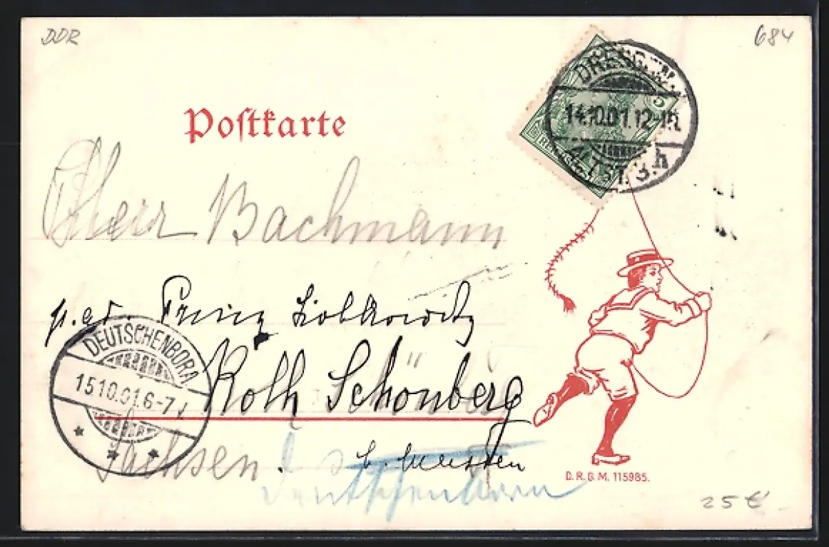 alte Ansichtskarte, gelaufen 1901, Stempelspur, guter Zustand