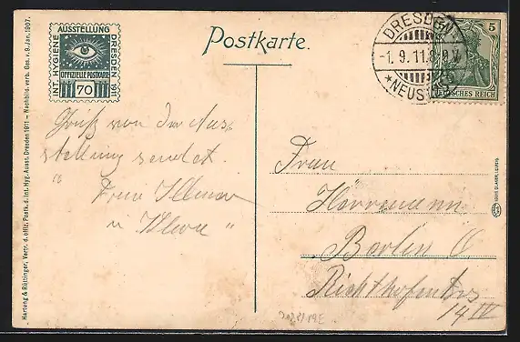 alte Ansichtskarte, gelaufen 1911, Eckknick oben re., guter Zustand