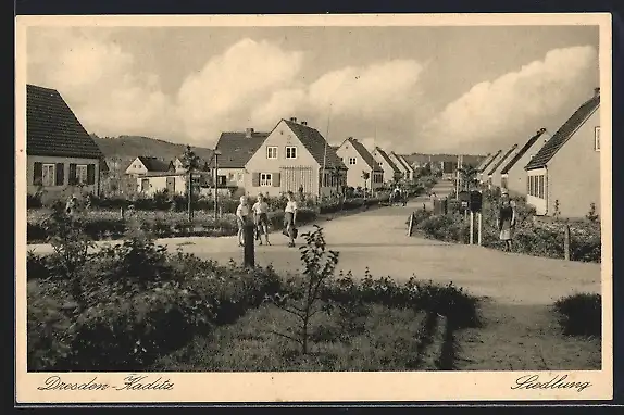 AK Dresden-Kaditz, Strassenpartie mit Siedlung