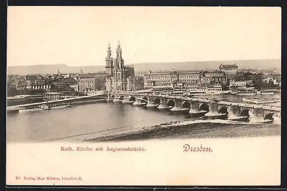 AK Dresden, Kath. Kirche mit Augustusbrücke