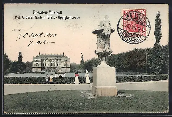 AK Dresden, Kgl. Grosser Garten, Palais u. Üppigkeitsvase