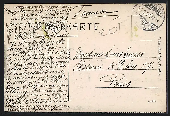 gelaufen 1910, Eckknick unten re., Stempelspur, guter Zustand
