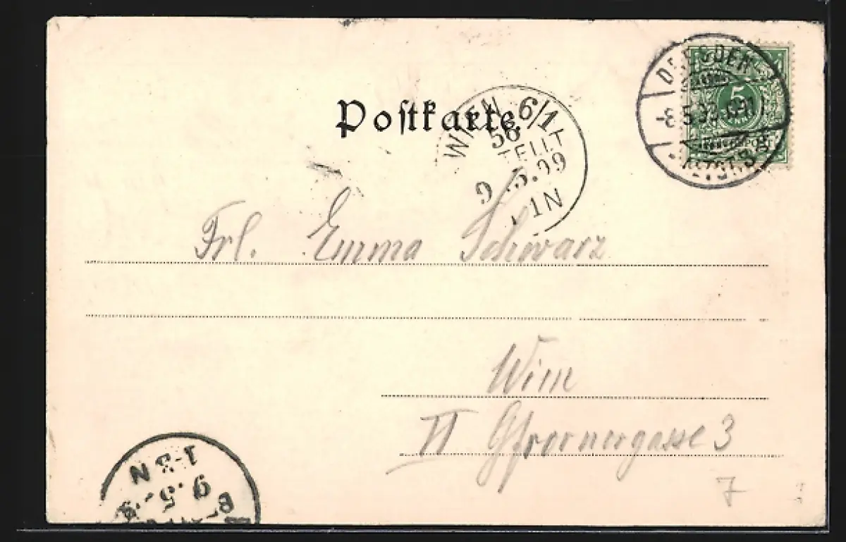 alte Ansichtskarte, gelaufen 1899, Stempelspur, guter Zustand