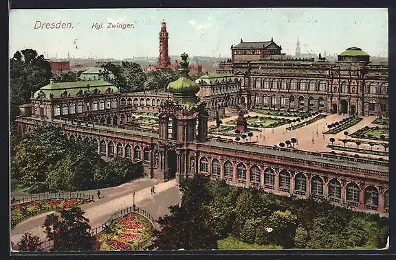 AK Dresden, Kgl. Zwinger aus der Vogelschau