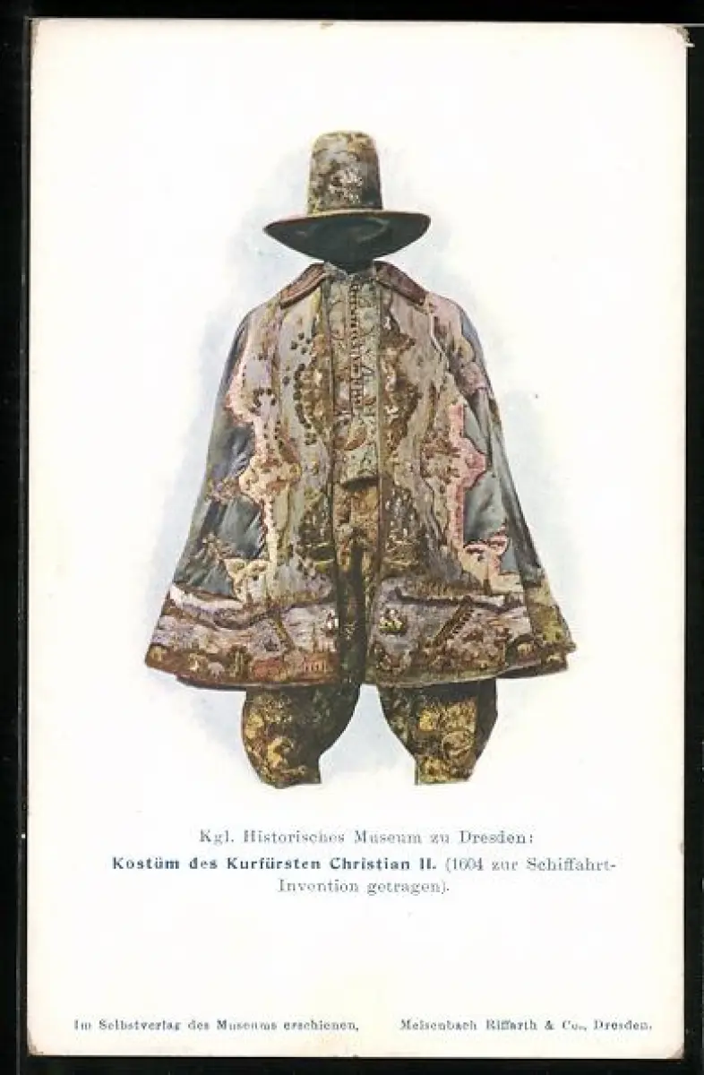 AK Dresden, Kostüm des Kurfürsten Christian II. im Kgl. historischen Museum