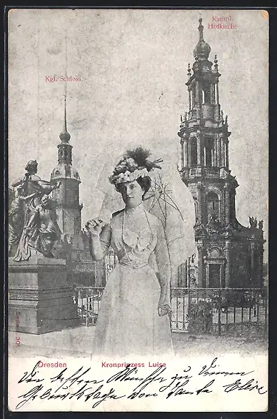 AK Dresden, Kronprinzessin Luise von Sachsen vor der Kath. Hofkirche