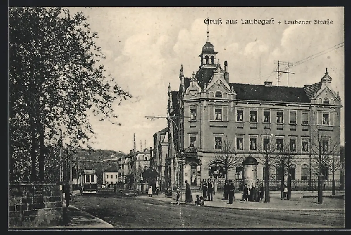 AK Dresden-Laubegast, Strassenbahn in der Leubener Strasse