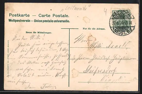 alte Ansichtskarte, gelaufen 1909, Eckknick li. oben, guter Zustand