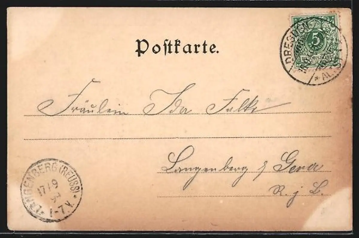 alte Ansichtskarte, gelaufen 1899, Stempelspur, guter Zustand