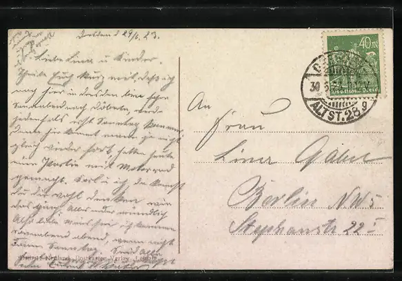 alte Ansichtskarte, gelaufen 1923, Eckknick oben re., guter Zustand