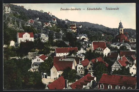 AK Dresden-Loschwitz, Totalansicht mit Schwebebahn