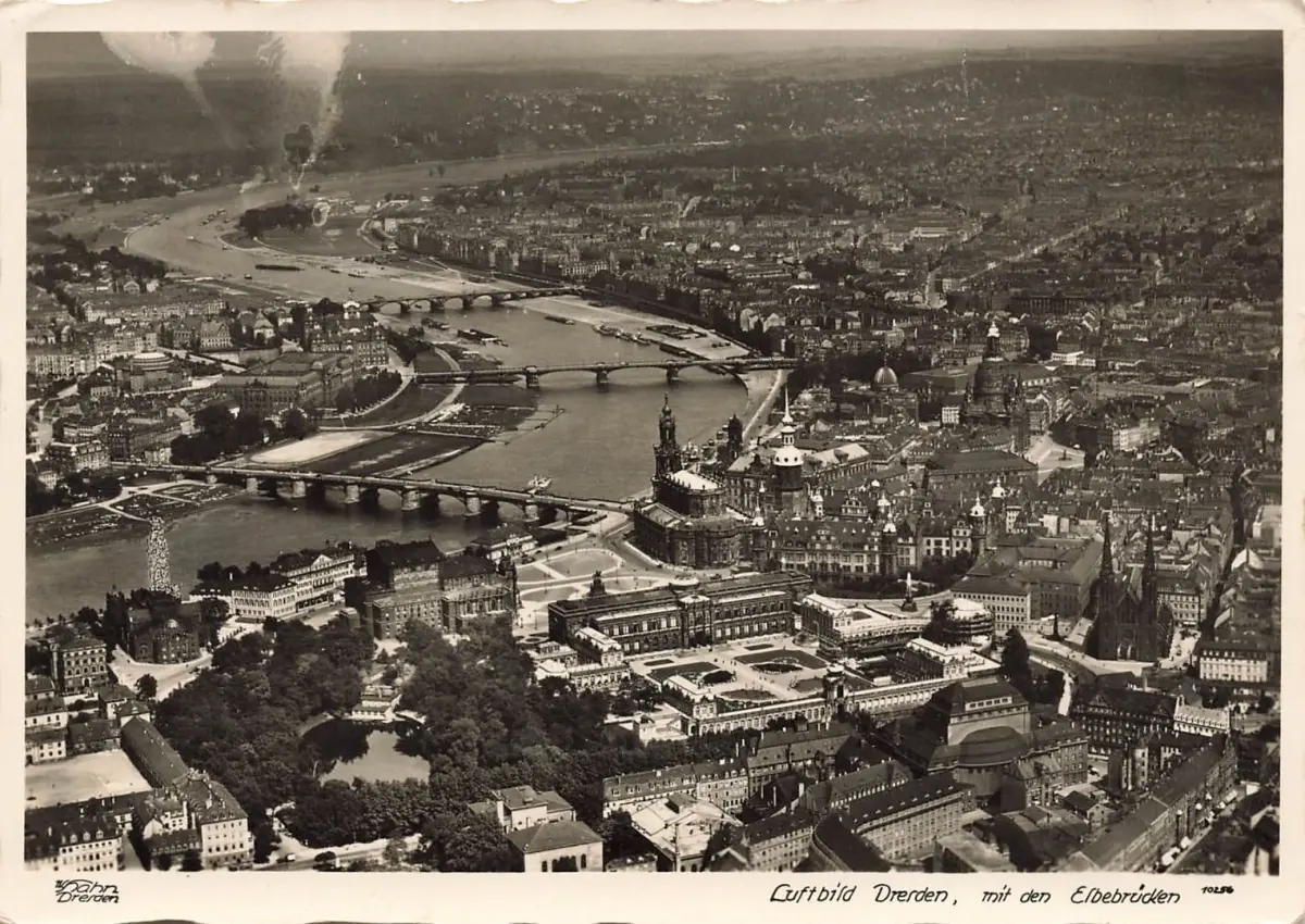 AK Dresden Luftbild Elbebrücken Sachsen 1941 gelaufen Hahn 10256 Postkarte