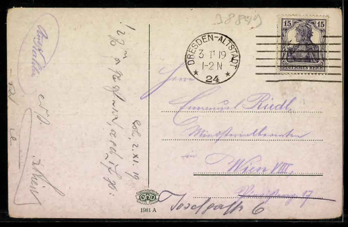 alte Ansichtskarte, gelaufen 1919, Eckknick oben rechts, guter Zustand