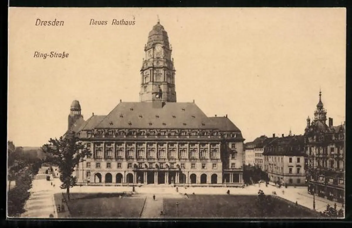AK Dresden, Neues Rathaus mit Passanten