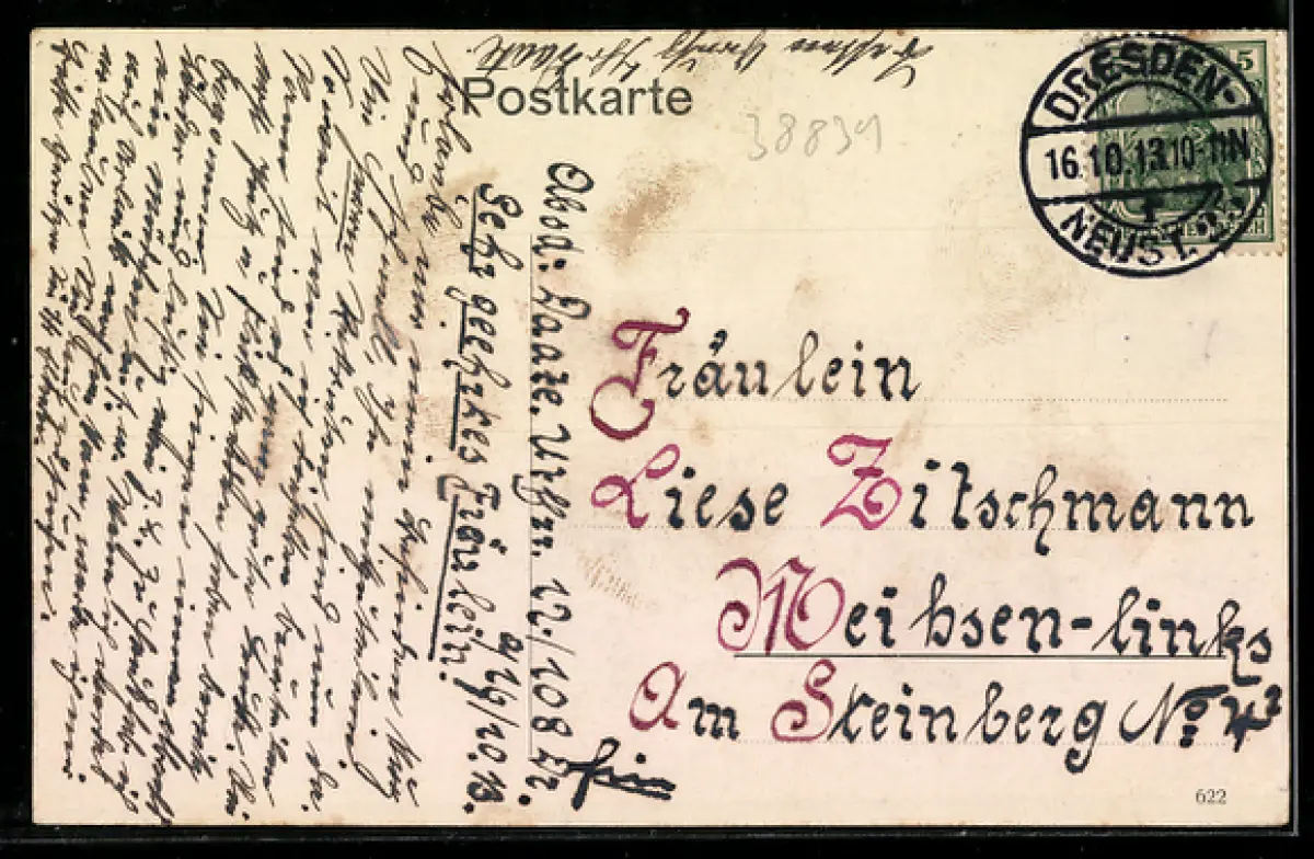 alte Ansichtskarte, gelaufen 1913, Stempelspur, guter Zustand