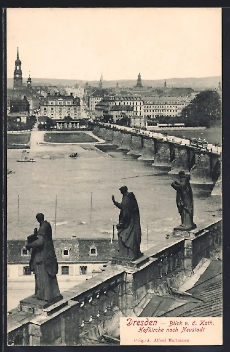 AK Dresden-Neustadt, Blick v. d. Kath. Hofkirche nach Neustadt